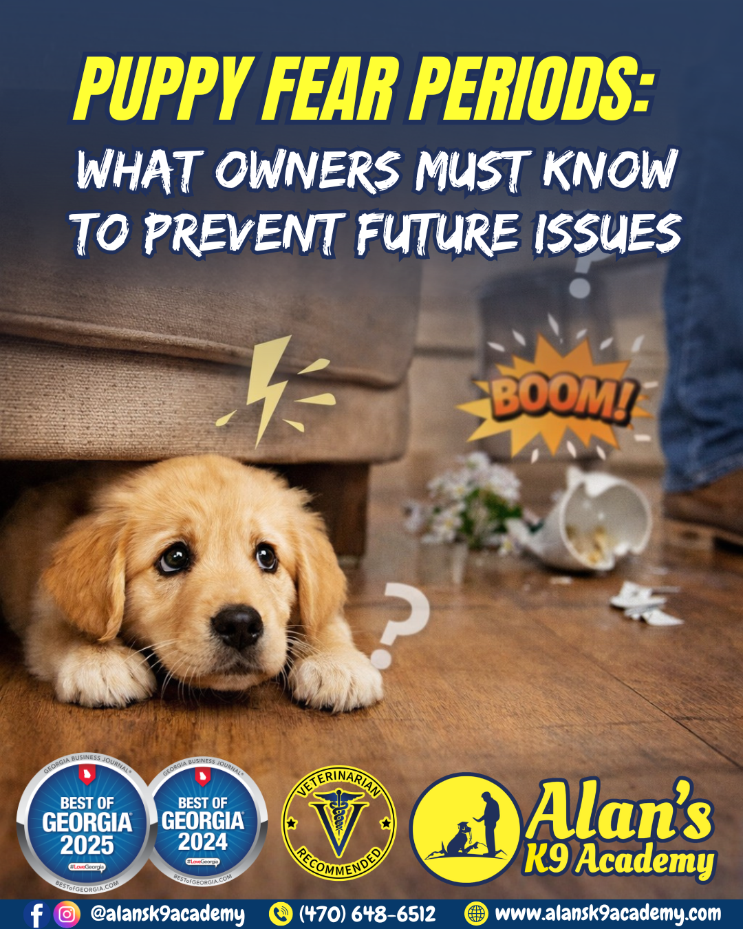 At Alan’s K9 Academy, we often work with adult dogs whose reactivity, anxiety, or confidence issues can be traced back to unmanaged fear periods in puppyhood.